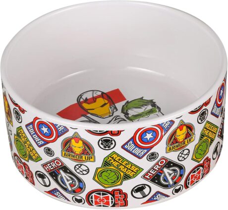 Tazón de perro de cerámica Avengers de Marvel Comics, 6 pulgadas | Cuenco de perro de cerámica blanca con detalle oficial de Avengers | Tazón para perros razas pequeñas y medianos o cuenco de agua para comida seca y húmeda | 3.5 tazas 28 oz