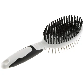 Cepillo combinado muy eficaz en la eliminación del pelo muerto. Por un lado, es equipado con púas redondeadas en acero inoxidable que quitan el pelo muerto sin dañar la piel, por otro lado, hay cerdas de póliamida que tienen la propiedad reestructuradora, dando brillo al manto. Este cepillo, al mismo tiempo, dona un masaje estimulante al pet. Práctico de utilizar, este cepillo tiene el innovador mango ergonómico con goma suave que garantiza una mayor comodidad. GRO 5763 se caracteriza además por materiales resistentes y de alta calidad para asegurar una mayor robustez.