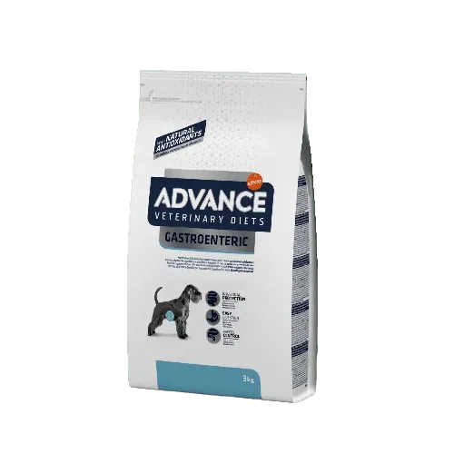 ADVANCE VETERINARY DIETS Gastroenteric es un alimento dietético completo para cachorros y perros adultos, elaborado con ingredientes muy digestibles, nivel bajo de grasa y una mayor proporción de sodio y potasio, para ayudar a reducir ciertas alteraciones gastrointestinales y para casos de insuficiencia pancreática exocrina.