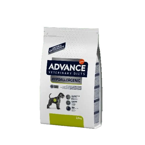 Elaborado con proteína de soja hidrolizada de muy bajo peso molecular como única fuente de proteína y almidón purificado como única fuente de carbohidratos, facilita la digestión de los perros que sufren alergias e intolerancias alimentarias. Además, gracias a su recubrimiento hipoalergénico tiene un sabor superior. Con proteína de soja hidrolizada de muy bajo peso molecular como única fuente de proteína y almidón purificado como única fuente de carbohidratos, ADVANCE VETERINARY DIETS – Hypoallergenic facilita la digestión de los perros que sufren alergias e intolerancias alimentarias. Además, gracias a su recubrimiento hipoalergénico tiene un sabor superior. ADVANCE VETERINARY DIETS – Hypoallergenic es una dieta de exclusión indicada para reacciones adversas a la comida.