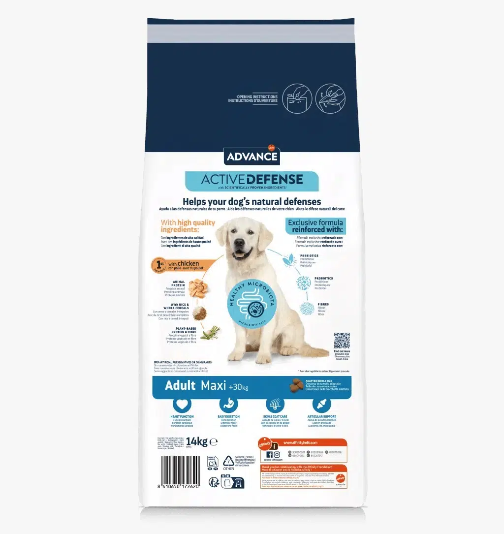 Advance Adult Maxi es un alimento de alta gama fácil de digerir formulado para cubrir las necesidades de los perros adultos de tamaño grande.