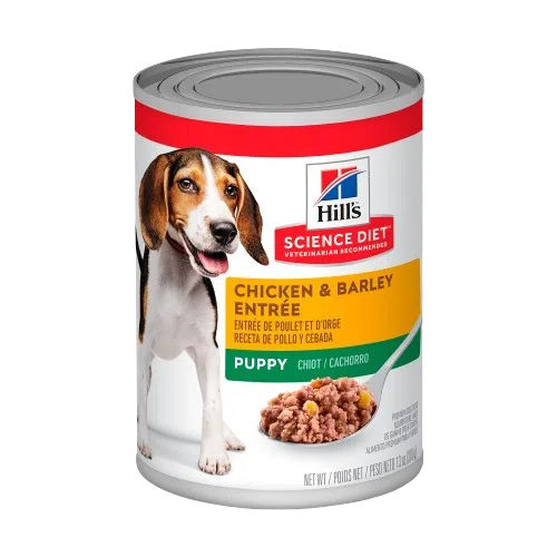 El alimento para perros Hill’s® Science Diet® Puppy Chicken & Barley Entrée es una deliciosa manera de proporcionar nutrición balanceada con precisión que es importante para la salud y bienestar general de su mascota. Hecho con pollo verdadero y granos enteros. Delicioso alimento para cachorros para darles el mejor comienzo en la vida.