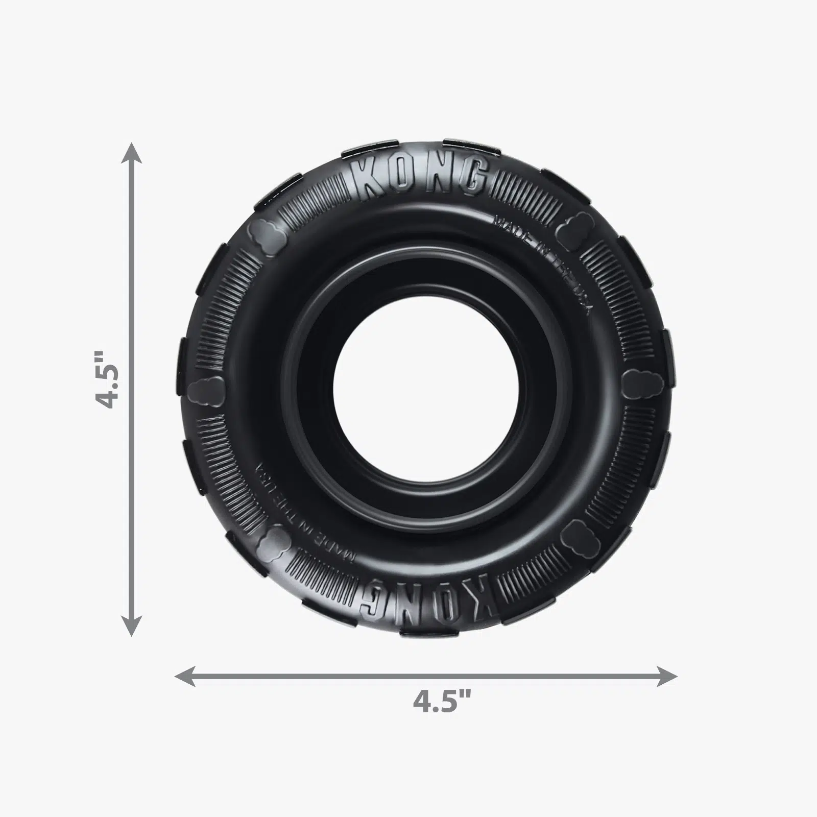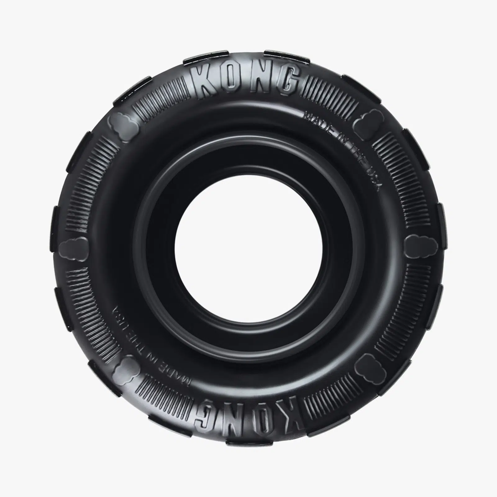 El KONG Tire es un juguete de caucho duradero con paredes laterales que tienen una forma única y una banda exterior gruesa que crea una barrera elástica súper duradera. Las paredes laterales están diseñadas para doblarse y rebotar cuando se las comprime, lo que brinda una experiencia de masticación activa; los juguetes Tire son perfectos para los juegos de buscar con muchos rebotes.