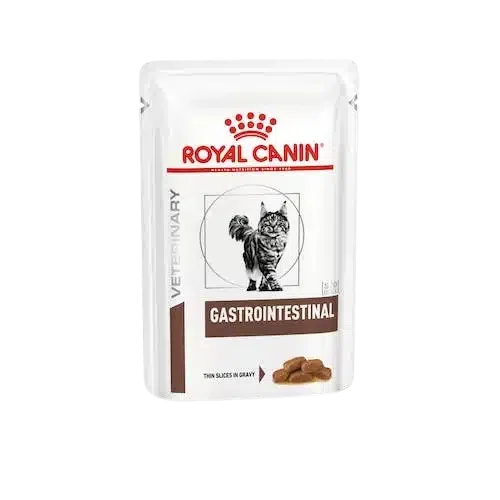 Las bolsas de comida húmeda Royal Canin Gastrointestinal son seguras para el sistema digestivo de su gato, ya que contienen proteínas, fibras y aceite de pescado de fácil digestión. Las bolsas de comida húmeda Royal Canin Gastrointestinal son ricas y satisfacen las necesidades energéticas de un gato adulto al tiempo que limitan la cantidad que ingiere. Está especialmente indicado en gatos con problemas digestivos y que sufren falta de apetito, pérdida de peso o recuperación.