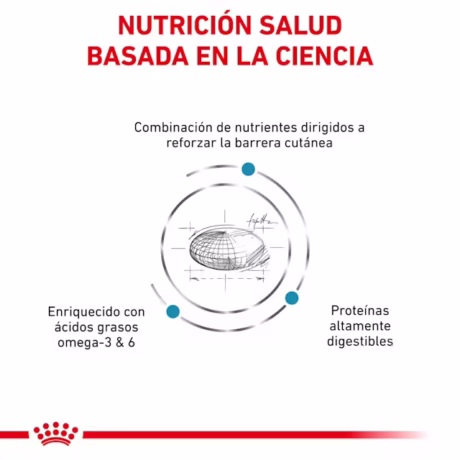 ROYAL CANIN Skin Care está formulado específicamente para ayudar a mantener la piel de tu perro en casos de dermatosis o pérdida de pelo.